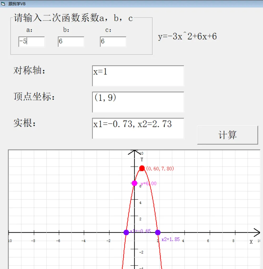 完整实现过程+源码 | 只需输入二次函数系数,应用VB编程即可动态生成函数图像!