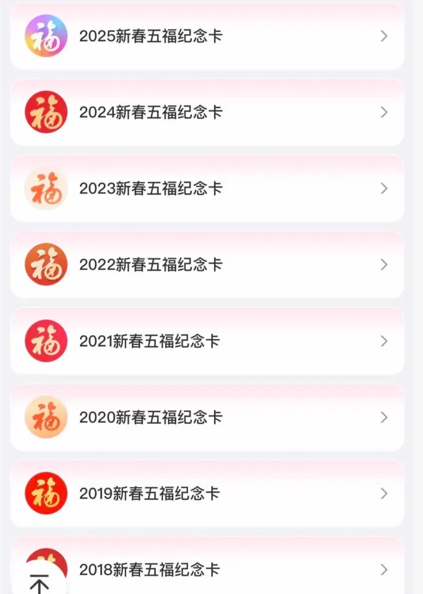 今年共上线19套主题福卡,除经典五福外,还包括王者荣耀、原神等人气游戏,以及小马宝莉、赞萌露比、奶龙等多款卡通潮玩IP。