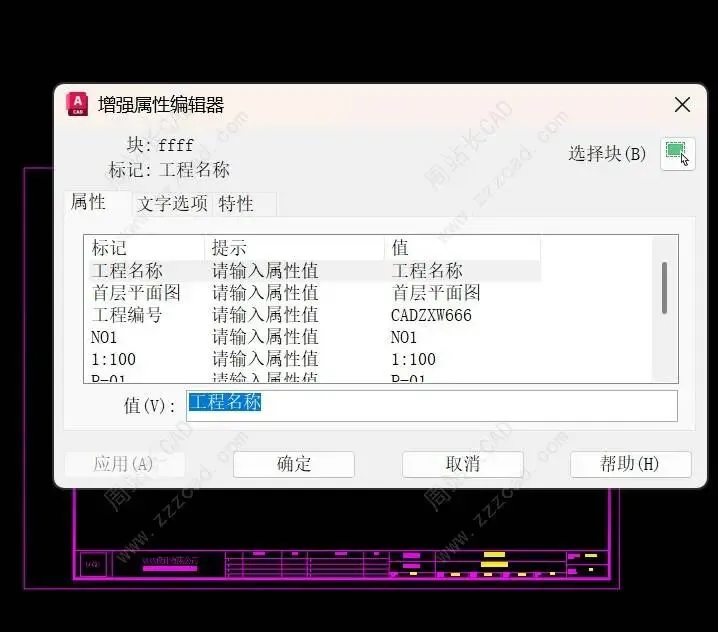 弹出属性标记、提示、默认值修改对话框,想修改就修改不想修改直接确定,建议修改下标记区分默认值,其他不要改。