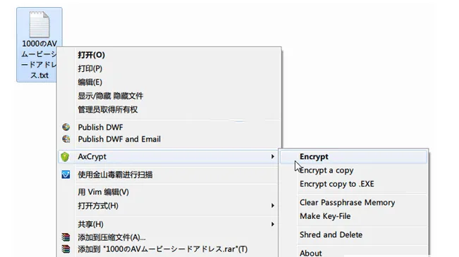 AxCrypt 是一款操作简单且功能全面的文件加密工具,加密时右键点击目标文件选择 “Encrypt” 即可,若想在未安装该软件的设备上使用加密文件,可选择 “Encrypt copy to .EXE” 生成 exe 文件;它还支持密码加密钥文件的双重加密方式,加密后的文件无论存放在网盘、U 盘还是其他电脑上都保持加密状态,同时具备文件粉碎功能,能通过随机数据覆盖原数据,确保删除的文件无法被还原,也能加密 4G 以上的大文件或文件夹