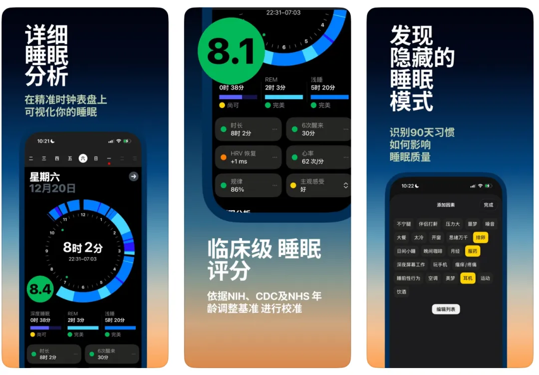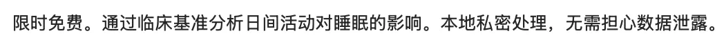 App Store 限时上架!专为 iPhone 设计 大家好,分享一个专为iPhone设计的睡眠健康软件,目前软件限时免费中,感兴趣的朋友速度获取!(相关内容:3个深夜睡眠APP) Sleepcraft 一款支持中文,可以测量睡眠结构和日间活动的健康提醒软件,可以监测睡眠周期的时长与百分比,了解夜间的恢复状况,通过日间活动和睡眠质量,建立活动能量、步数与随后睡眠质量之间的联系,让你了解睡眠质量。 获取方式 软件的数据演算依据来源于 NIH、CDC 和 NHS 的年龄调整标准,看起来很专业,感兴趣的朋友快去试试吧,设备需装有 iOS 18.0 或更高版本。 ①IPCC 68.0!低系统可刷,可改善网速? ②苹果日历,节假日补班天气黄历星座等增强版本 ③这个苹果神器安装后就不要升级了