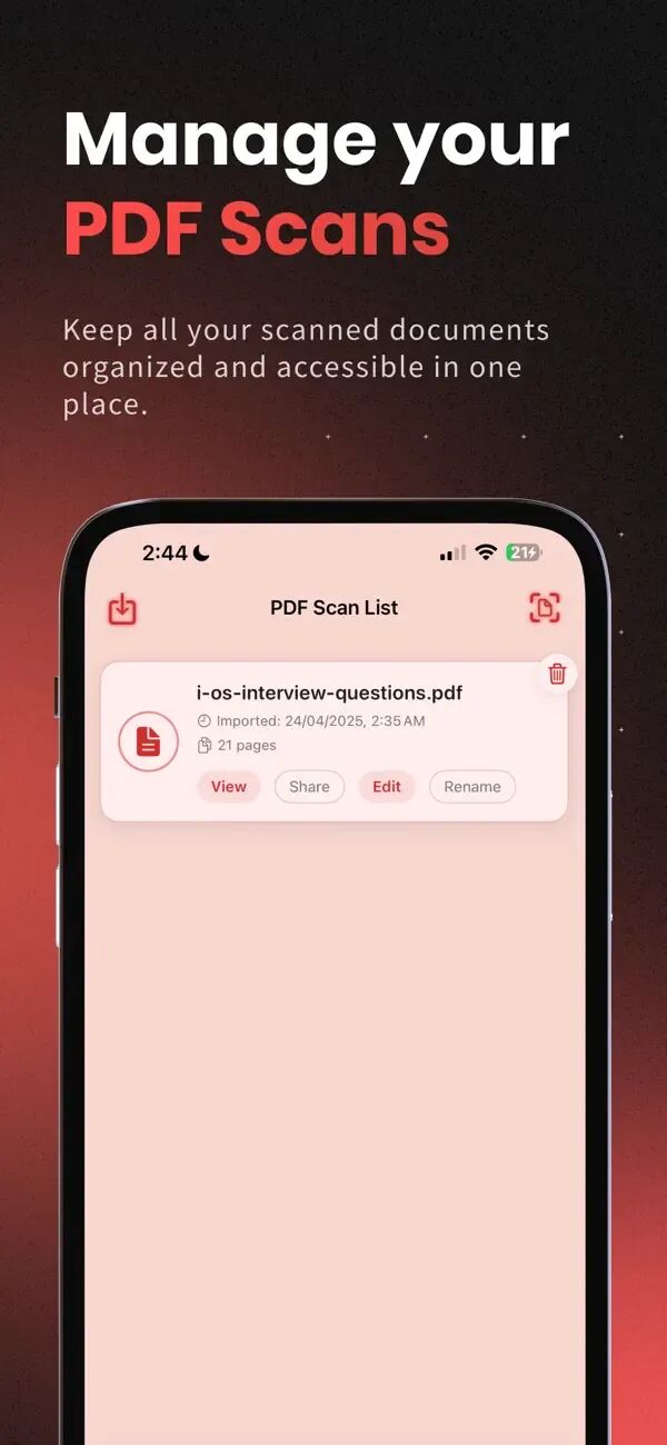 介绍: 一款PDF扫描与编辑应用。将iPhone变成全能文档中心的工具。它能智能扫描文件,自动优化边缘与清晰度,并支持批量处理。应用提供专业的PDF编辑、批注签名功能,并内置OCR引擎,能将扫描件即时转换为可搜索、可复制的文本。 ![]() ![]() ![]() 长按二维码 识别下载 |