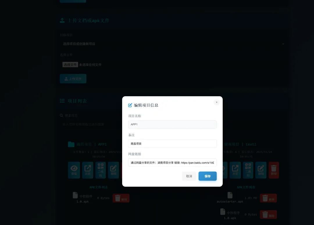 网盘链接管理:为每个项目添加网盘链接,支持一键复制