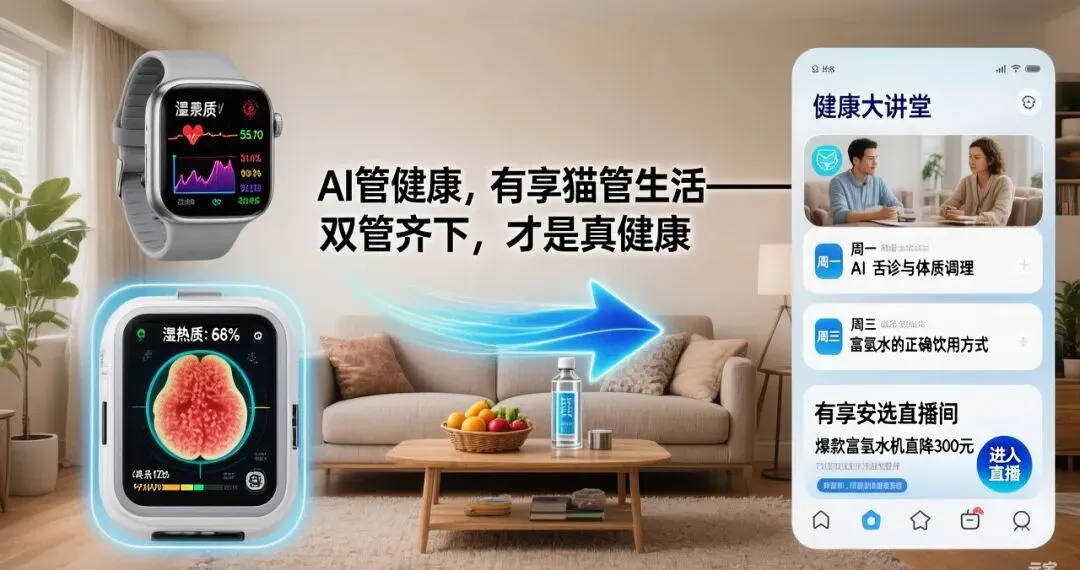 与其在亚健康里“硬扛”,不如打开有享猫APP,让AI帮你“找问题”;与其在购物平台“瞎逛”,不如蹲有享安选直播间,让专业团队帮你“挑好物”。