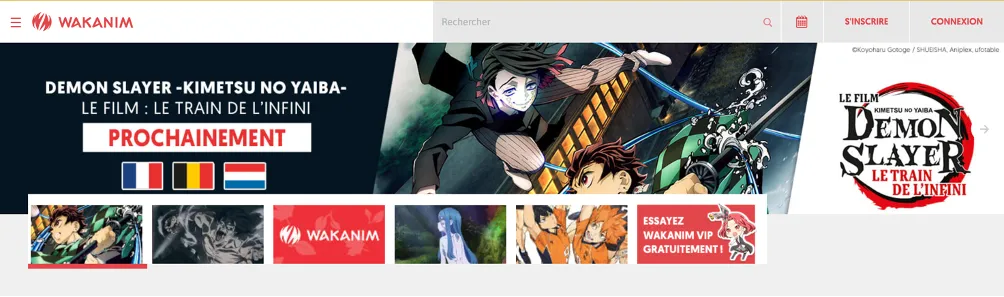 Wakanim是一家法国娱乐公司旗下专注于日漫的流媒体平台,能够做到和日本本土同步播出。它也是欧洲第一家没有数字版权管理,提供动漫下载服务的公司,只不过上面的资源都是VOSTFR(原声+法语字幕)。目前平台首页主推的动漫有《众神眷顾的男人》、《忧国的莫里亚蒂》,即将上线《进击的巨人》最后一季。