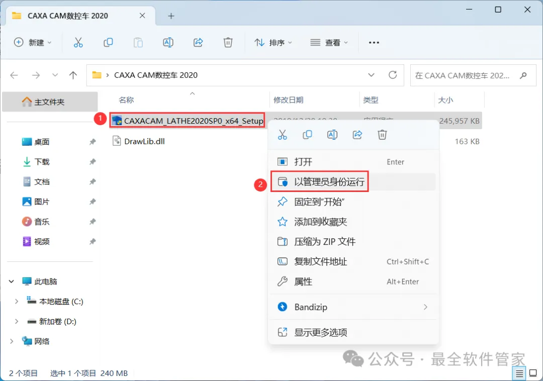 1、下载CAXA CAM数控车 2020软件安装包到电脑上,右键选择【解压到CAXA CAM数控车 2020\】