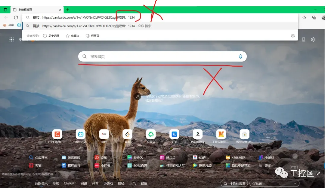 不要把链接复制到搜索栏中,一定要将链接粘贴到地址栏中才能打开,如下图