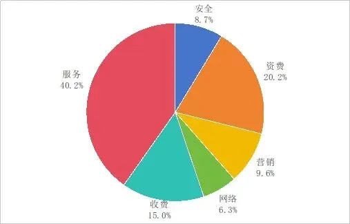 2025年第四季度,全国电信用户申诉中,涉及服务争议的申诉占比40.2%,涉及资费争议的申诉占比35.2%,涉及营销争议的申诉占比9.6%。各级电信用户申诉受理机构按照《电信用户申诉处理办法》相关规定,对用户申诉进行了处理和调解,有效维护了电信用户合法权益。2025年第四季度用户申诉主要涉及的移动转售企业见附件1。