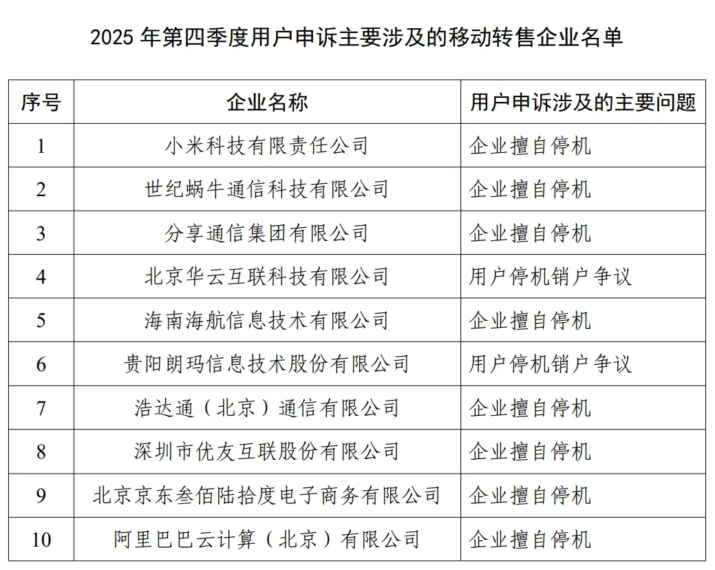 1.2025年第四季度用户申诉主要涉及的移动转售企业名单
