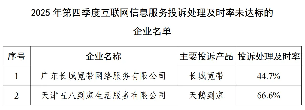 2.2025年第四季度互联网信息服务投诉处理及时率未达标的企业名单