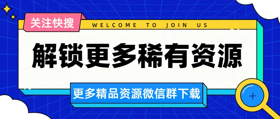 快搜900资源社群,主要是用来分享公众号不能分享的,以及全部资源合集…目前已经有150多人加入了,1个月时间更新了200多条内容,只要大家支持,我们就会长期做下去。