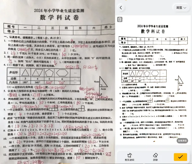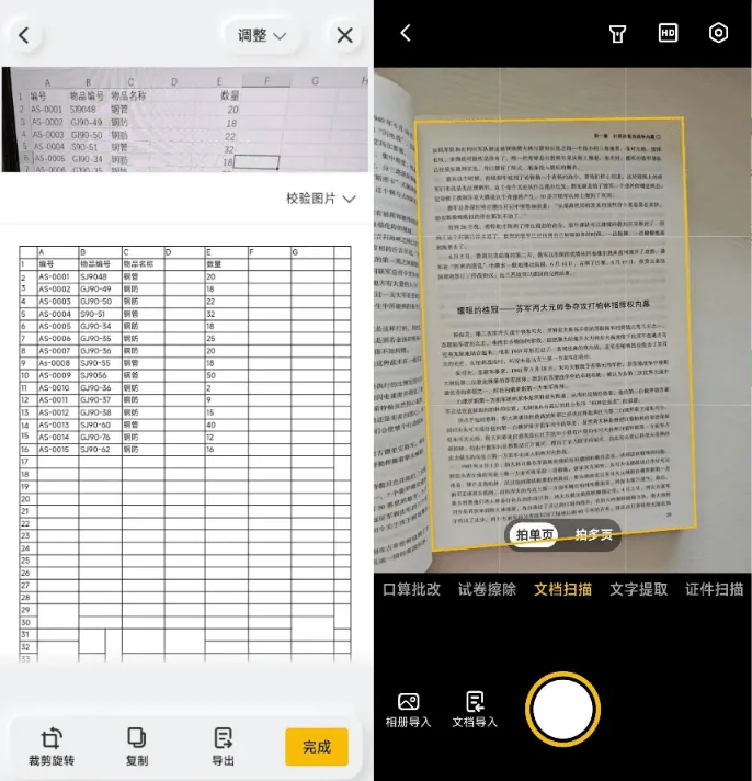 体验非常丝滑,支持文档提取、证件照扫描、手写字体去除、表格提取等,而且效果很好 -