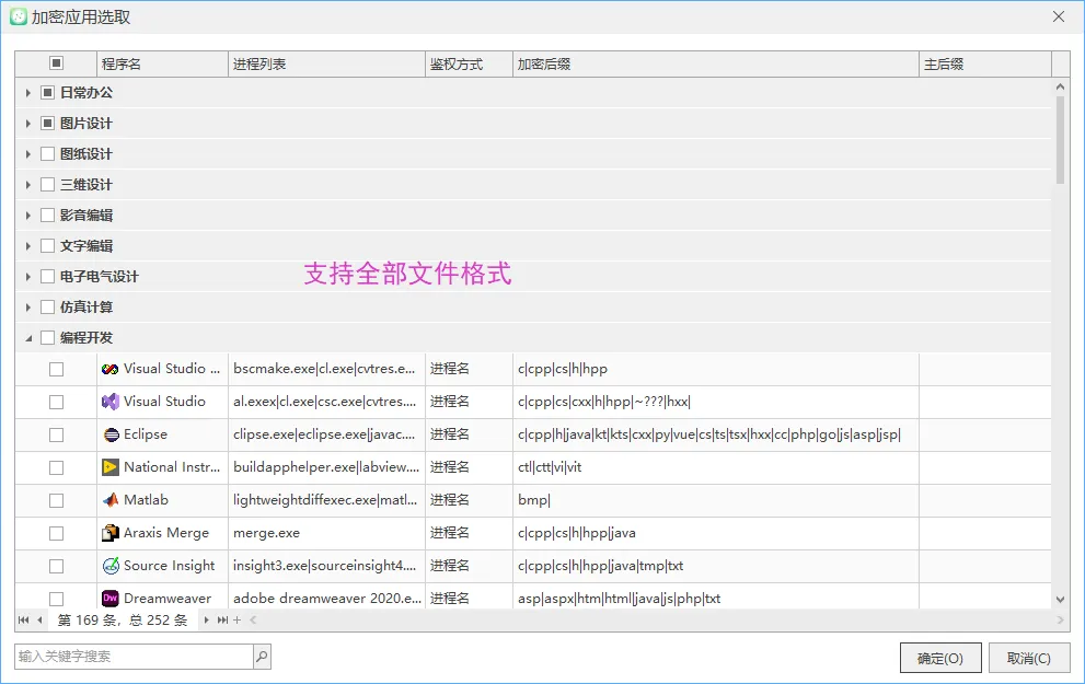 全格式支持:不管是普通文档、设计图纸,还是源代码、视频、压缩包,200+种格式都能覆盖,不用为不同类型文件单独找加密工具。