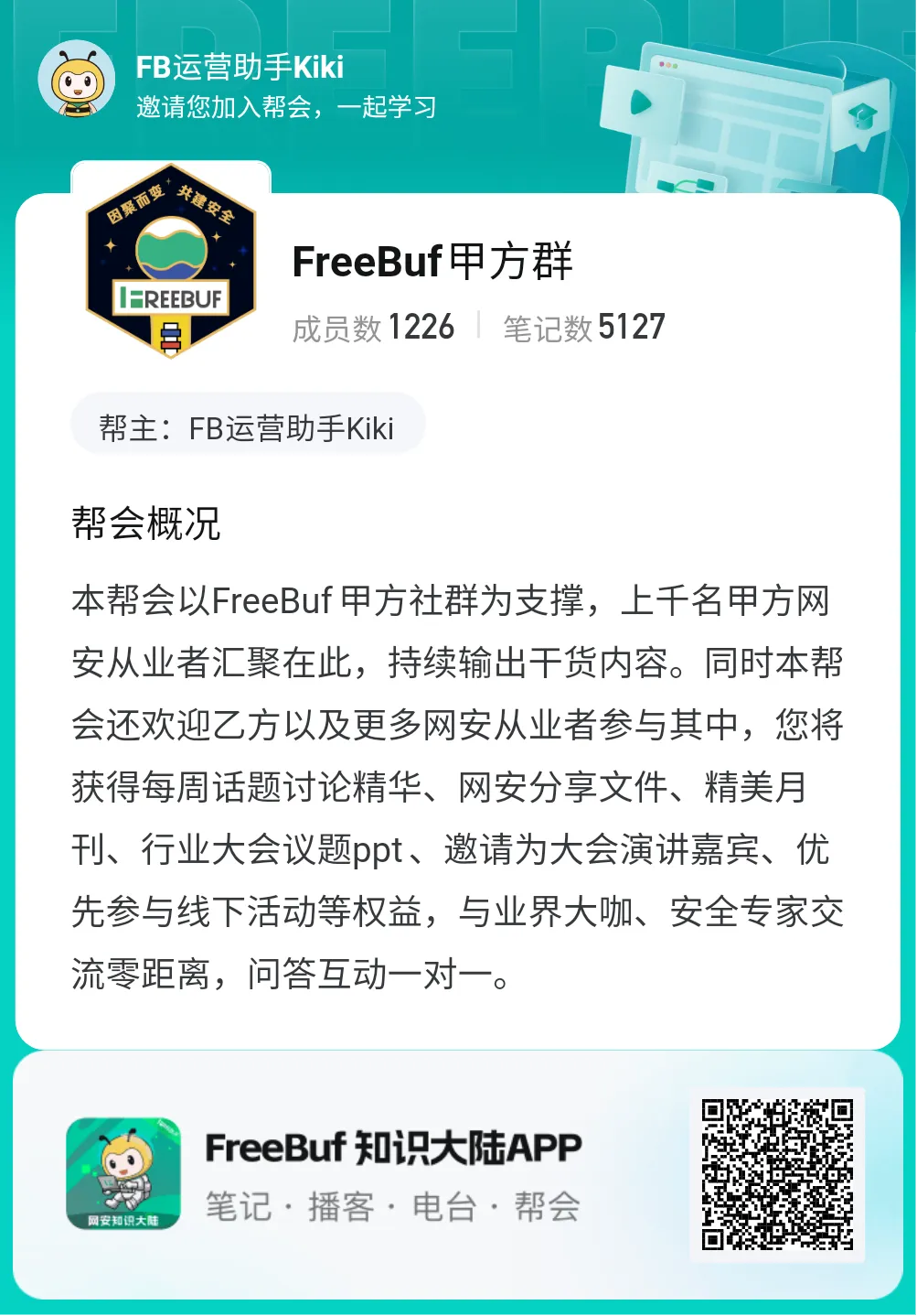 FreeBuf甲方社群每周开展不同的话题讨论,快来扫码加入我们吧!