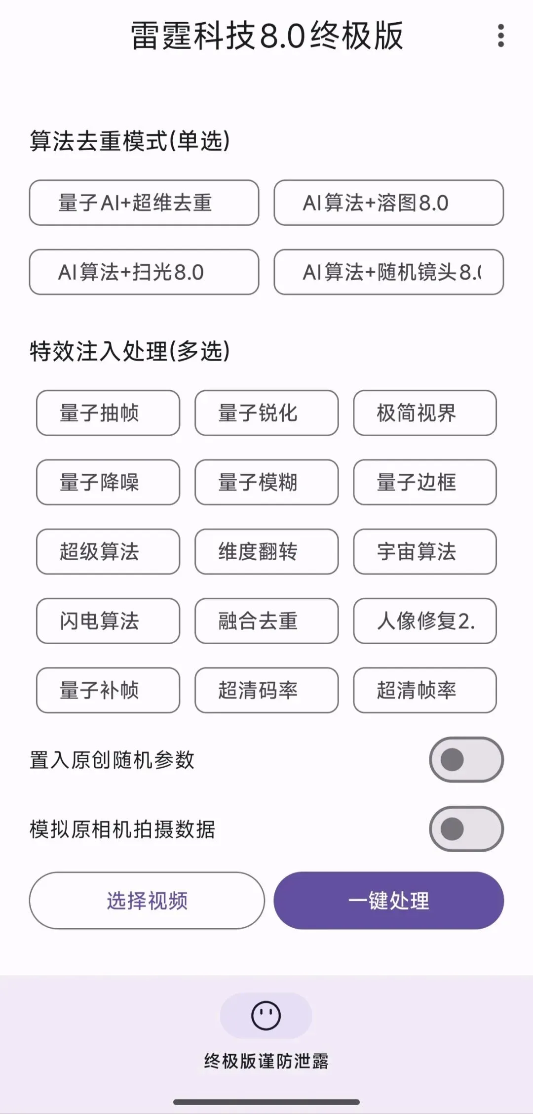 对于短视频带货选手来说,时间就是效率。雷霆科技 app 充分考虑到了这一点,它的操作界面简洁明了,即使是没有任何技术基础的新手也能轻松上手。你只需要将需要去重的视频导入 app,然后点击“去重”按钮,等待片刻,一个全新的视频就生成了。