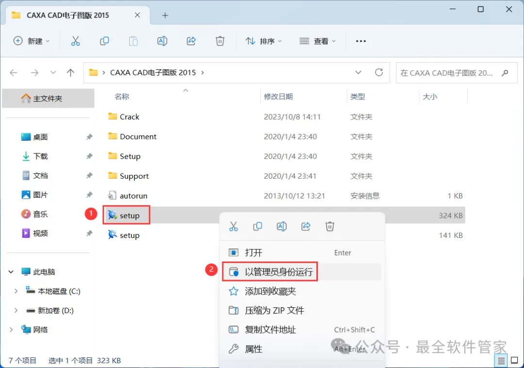 3、找到【setup】应用程序,右键选择【以管理员身份运行】它