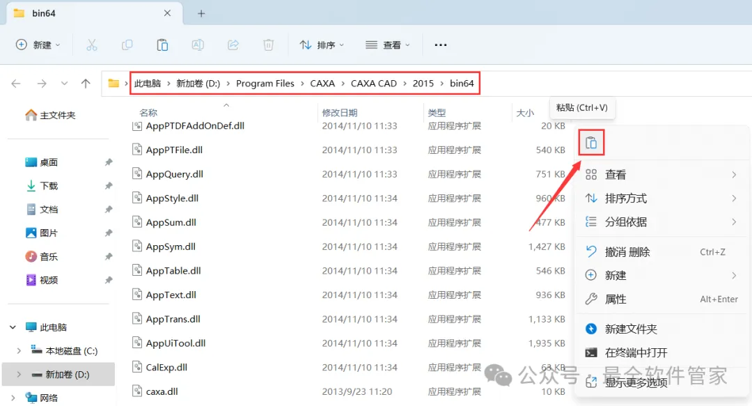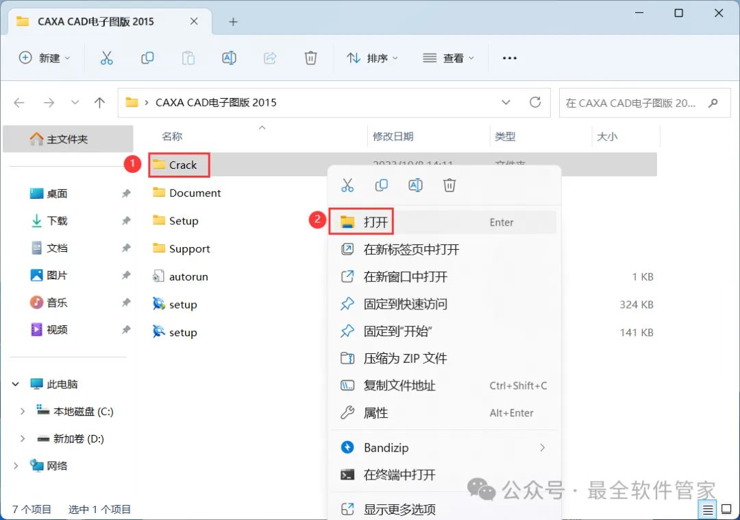 10、回到CAXA CAD电子图版 2015文件夹,找到【Crack】文件夹,右键【打开】它