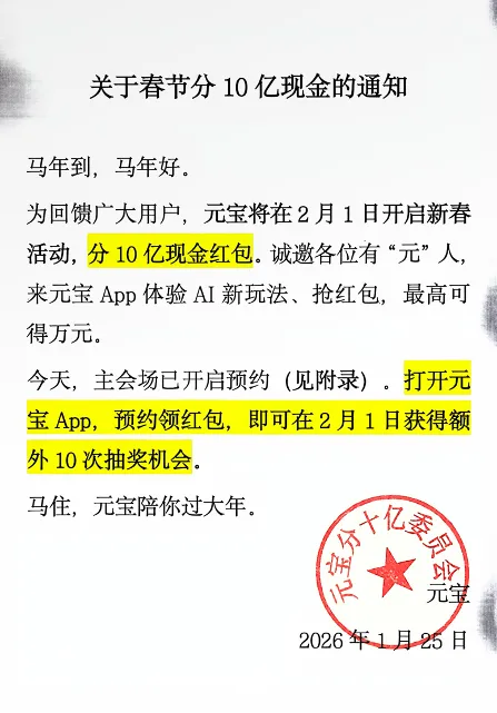 现在就去更新元宝App,预约活动,制定好你的每日任务计划。这个春节,多一份“数字年货”总是开心的!也别忘了把这份攻略分享给亲朋好友,大家一起抢,红包才热闹!