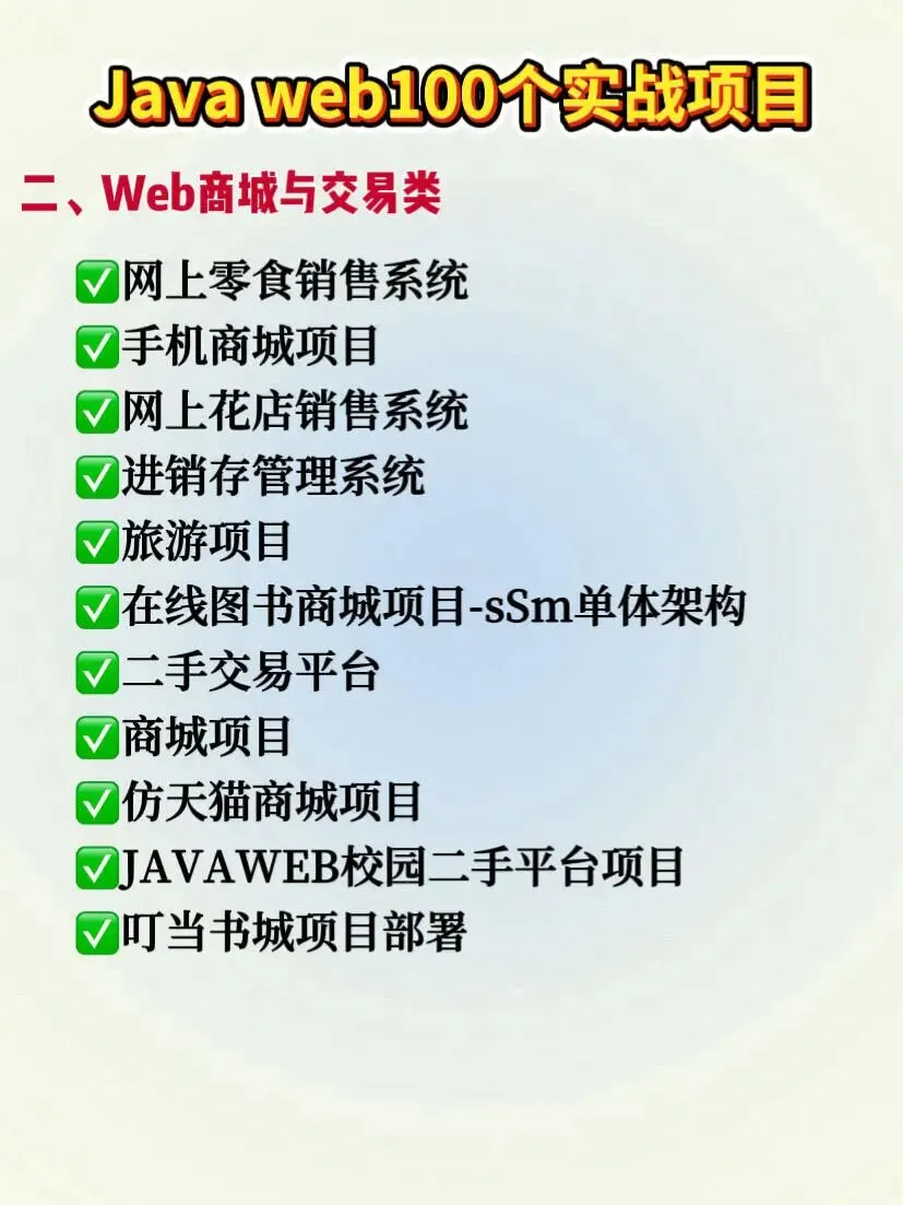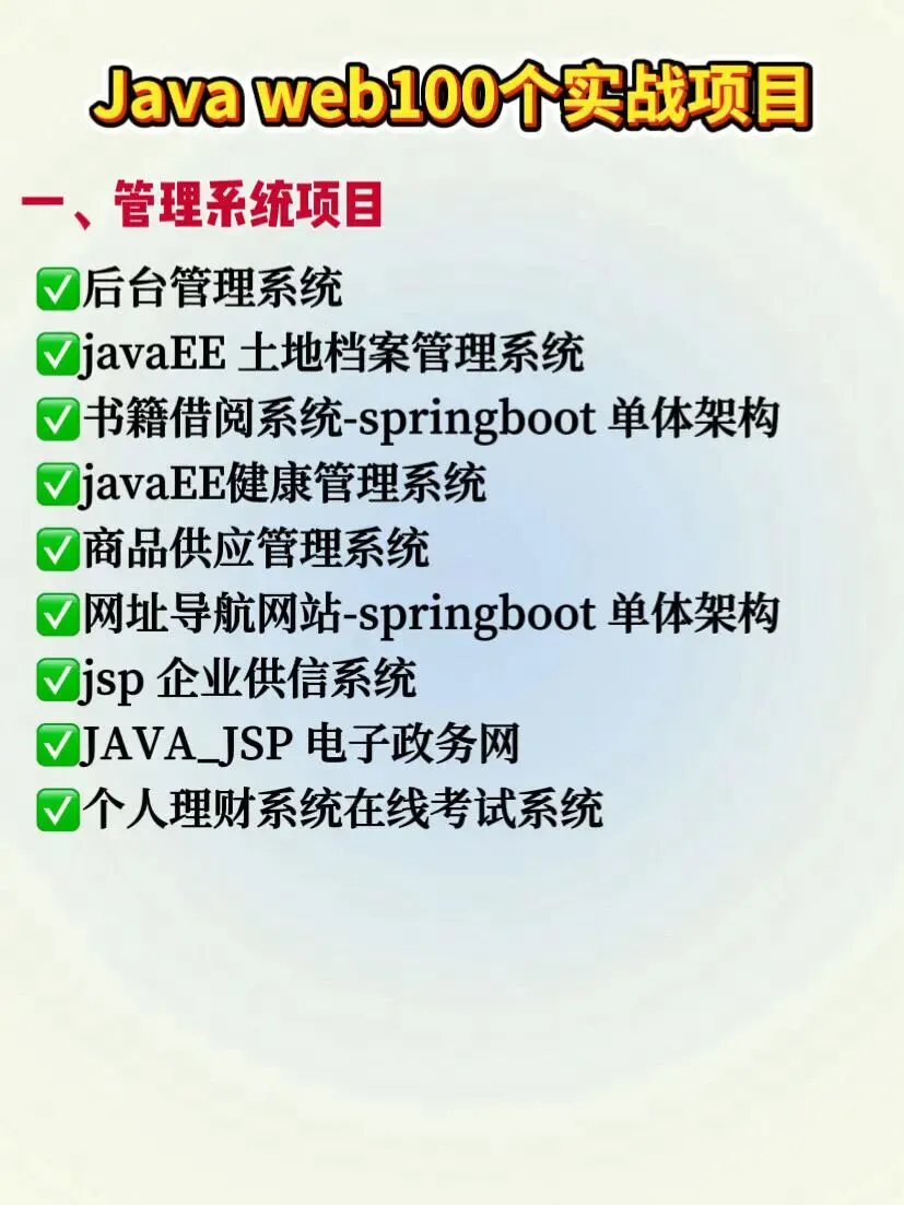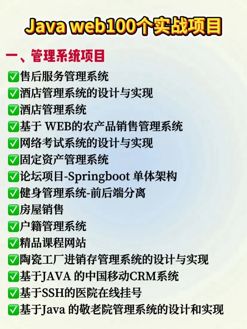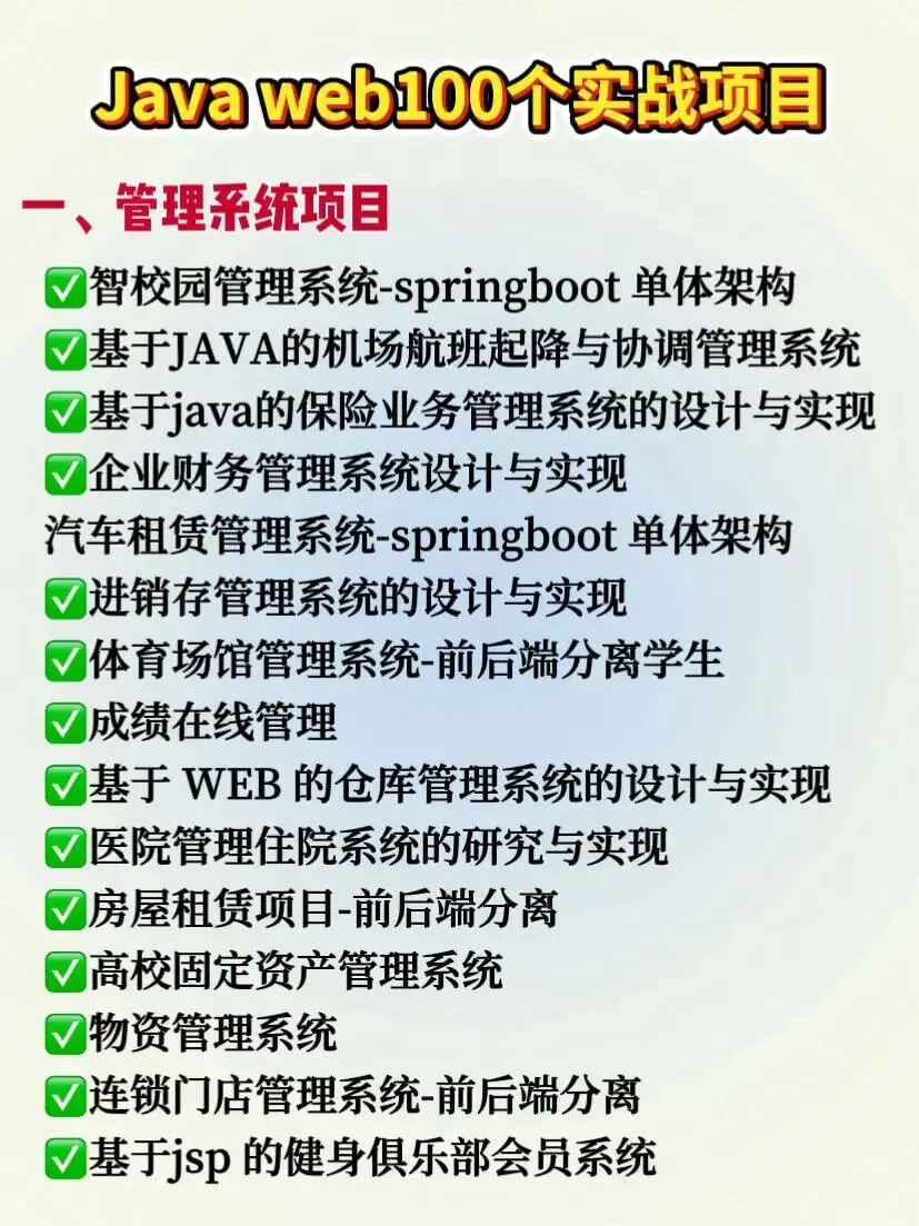 Java web100个实战项目-附源码视频~拿走即用! Java web100个实战项目,期末必备附源码视频!建议收藏✅ 项目给大家整理好了,有需要的小伙伴按以下步骤获取领取方式 1、点赞+在看 2、后台回复:项目