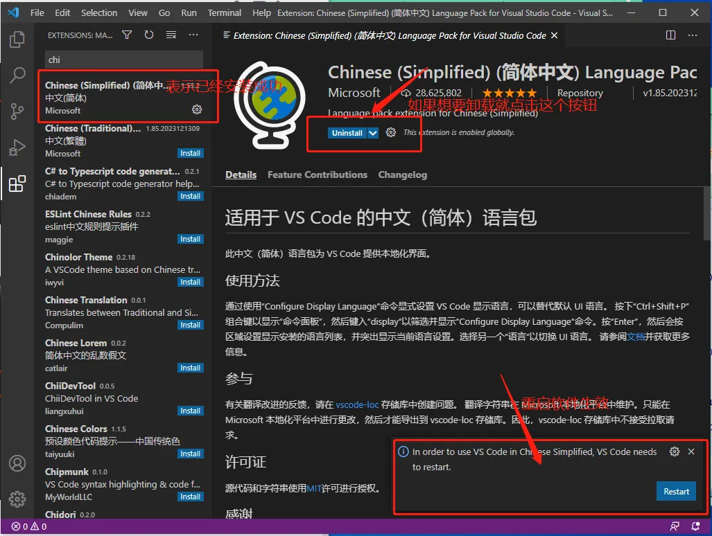 安装中文简体插件: