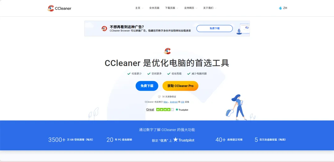 下载链接:https://www.ccleaner.com/zh-cn/ccleaner/download
