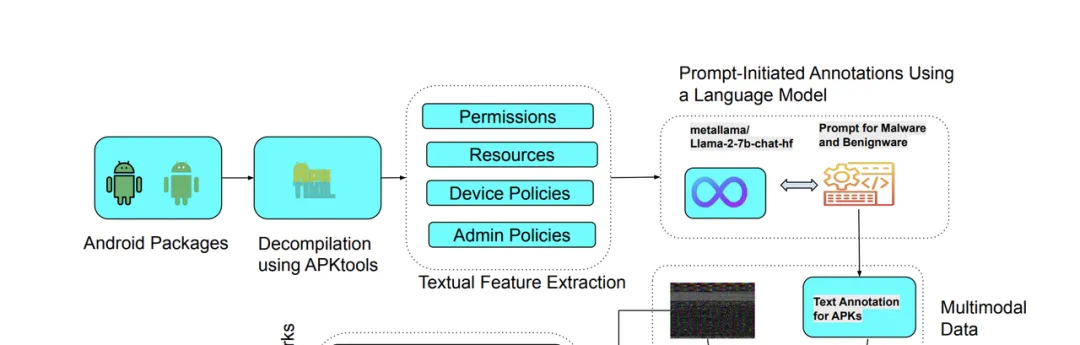 Prompt 驱动的 LLaMA-2 文本标注能够有效提取 APK 中的关键语义特征,为多模态融合提供高质量输入。