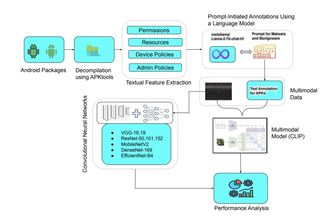 数据层:多源 APK 数据收集与双模态(图像 + 文本)预处理; -