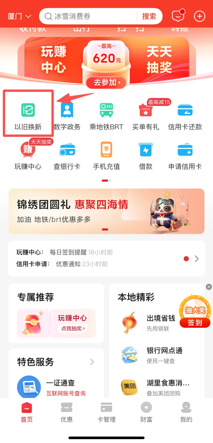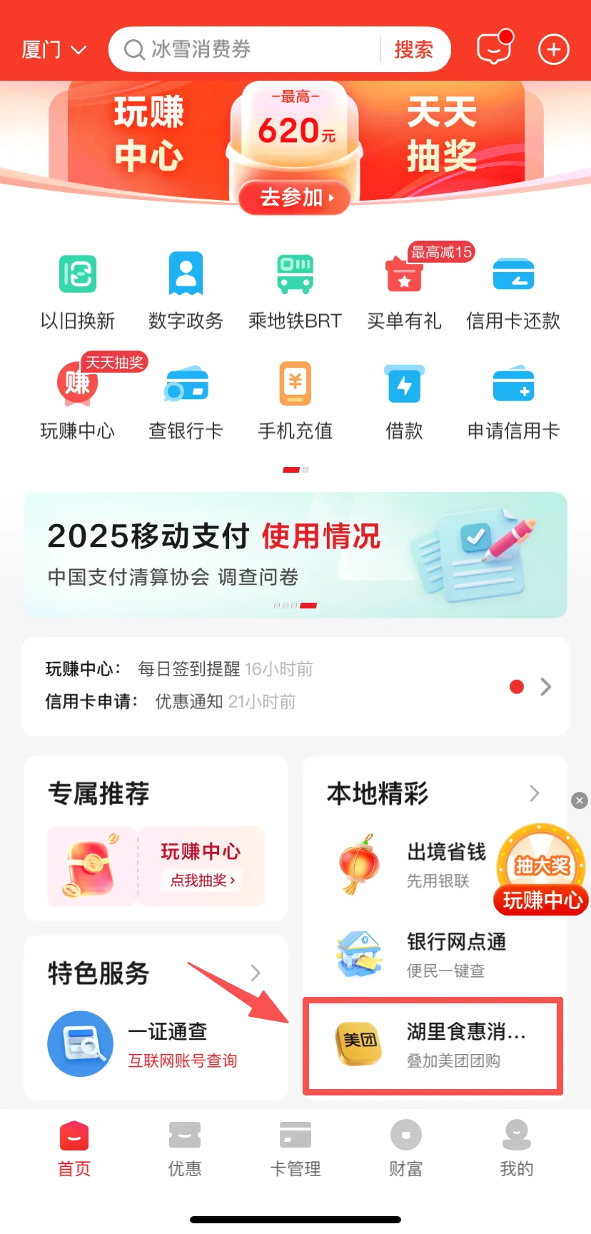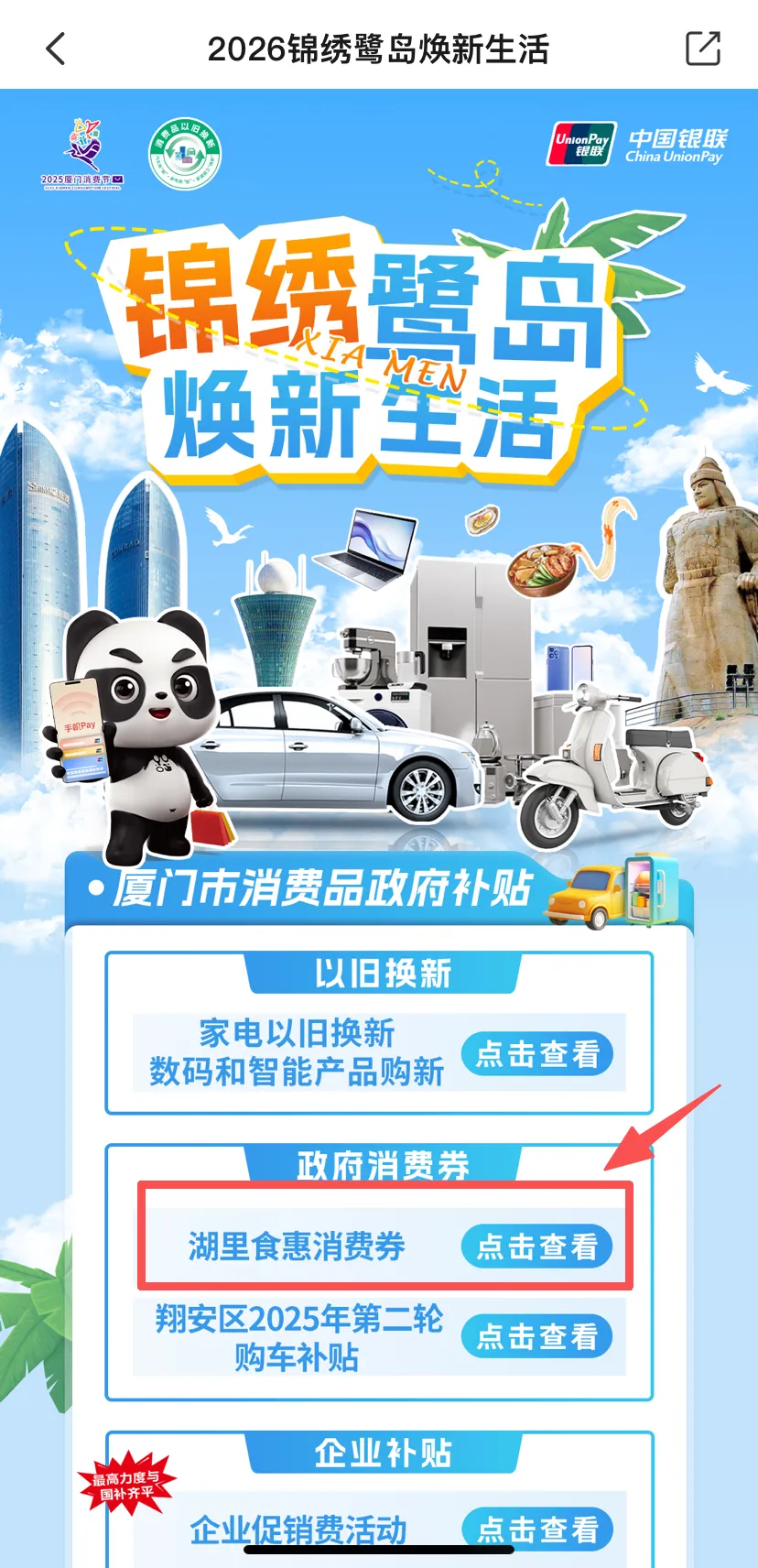 进入湖里食惠消费券活动页面查询