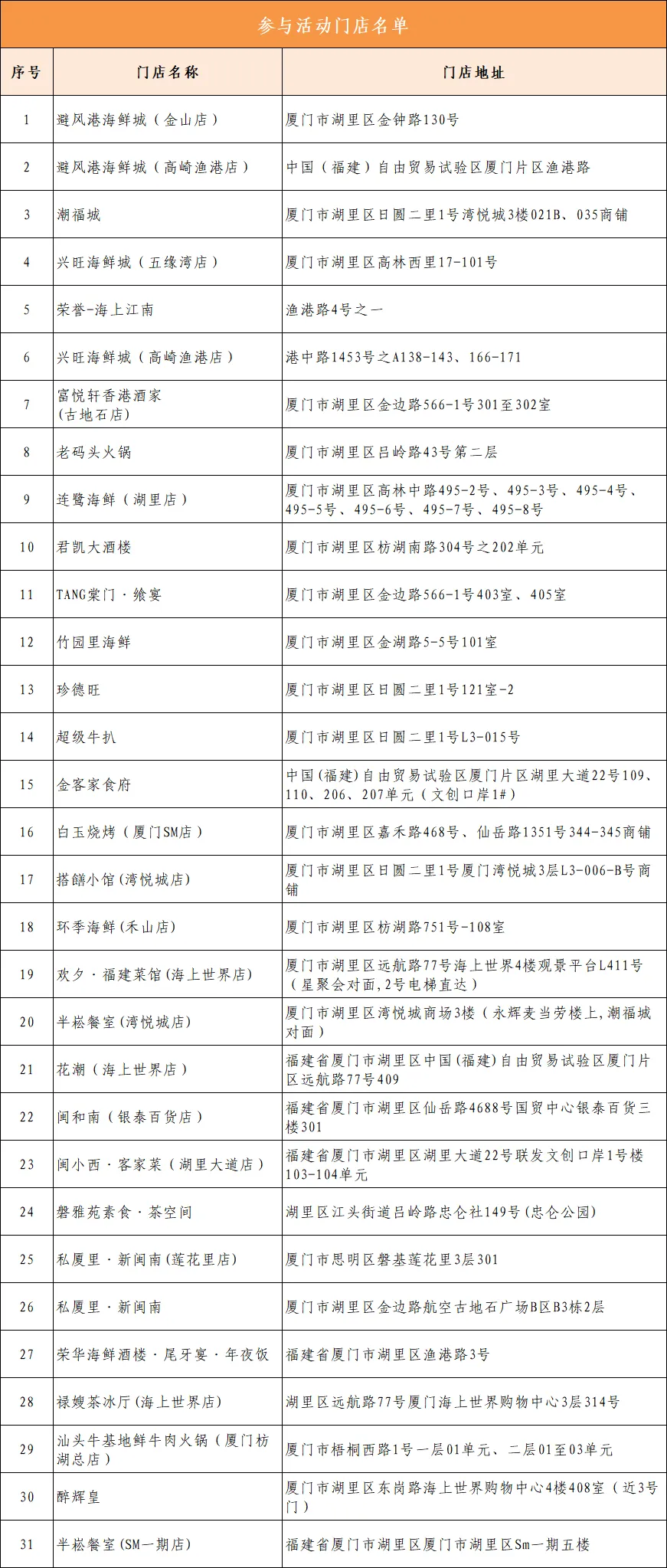 消费券适用商户名单