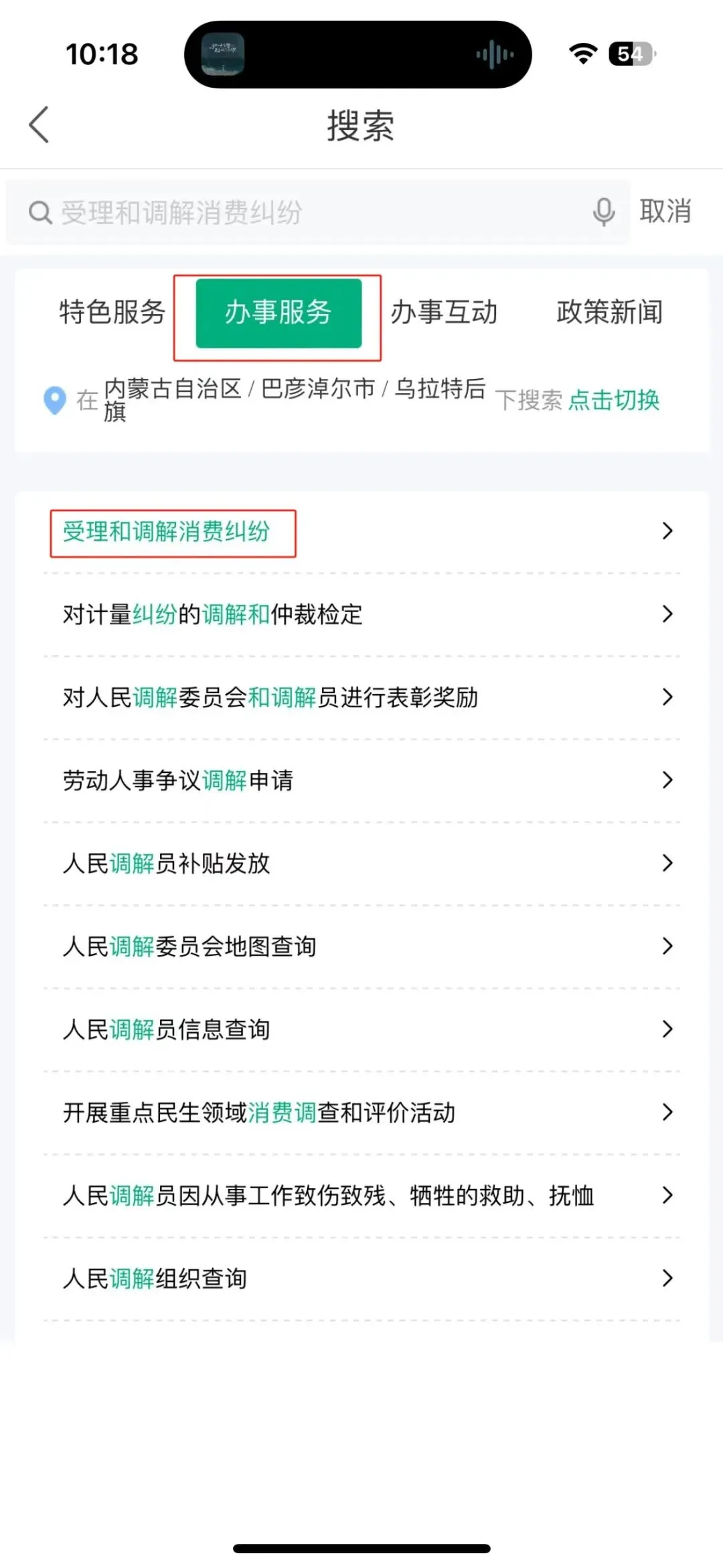第三步:搜索后点击办事服务,进入受理和调解消费纠纷。