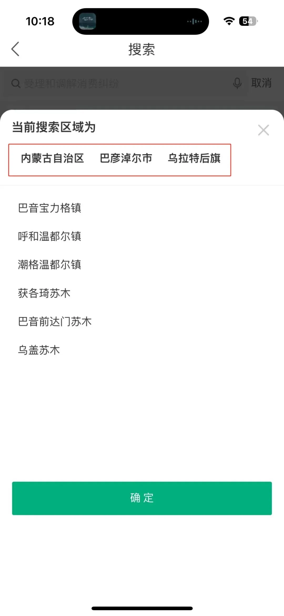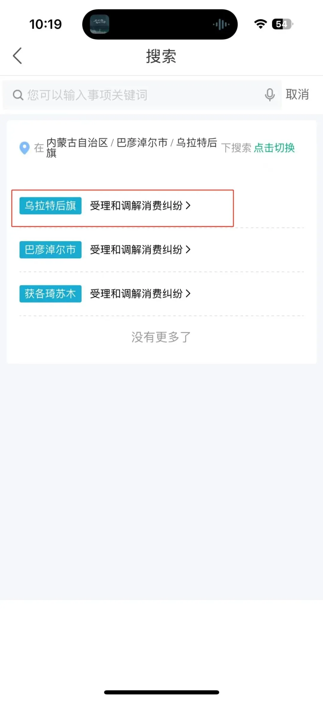 第五步:搜索后点击乌拉特后旗——受理和调解消费纠纷。