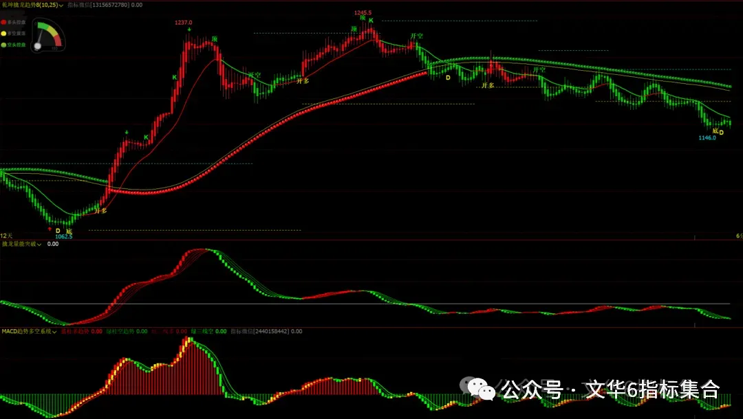 乾坤擒龙趋势主图:趋势判断,顶底dk信号,支撑压力画线