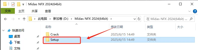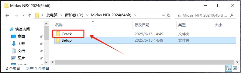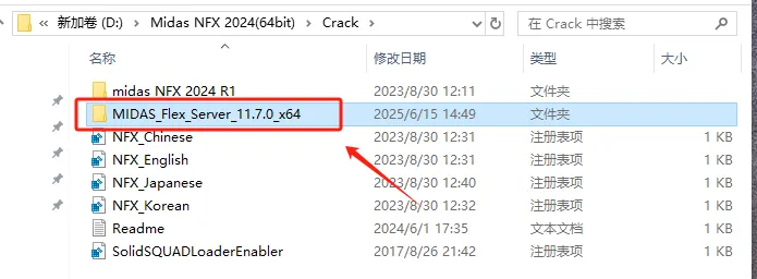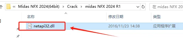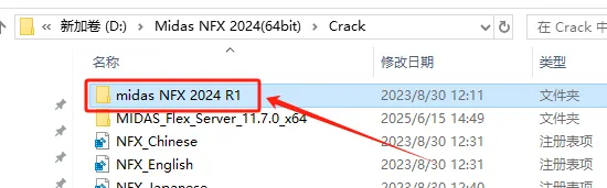 第二十一步:返回第二步解压的文件夹中的crack文件夹,找到【midas NFX 2024 R1】文件夹并打开。