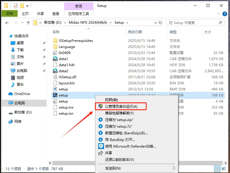 第四步:选中【Setup】右击,选择【以管理员身份运行】