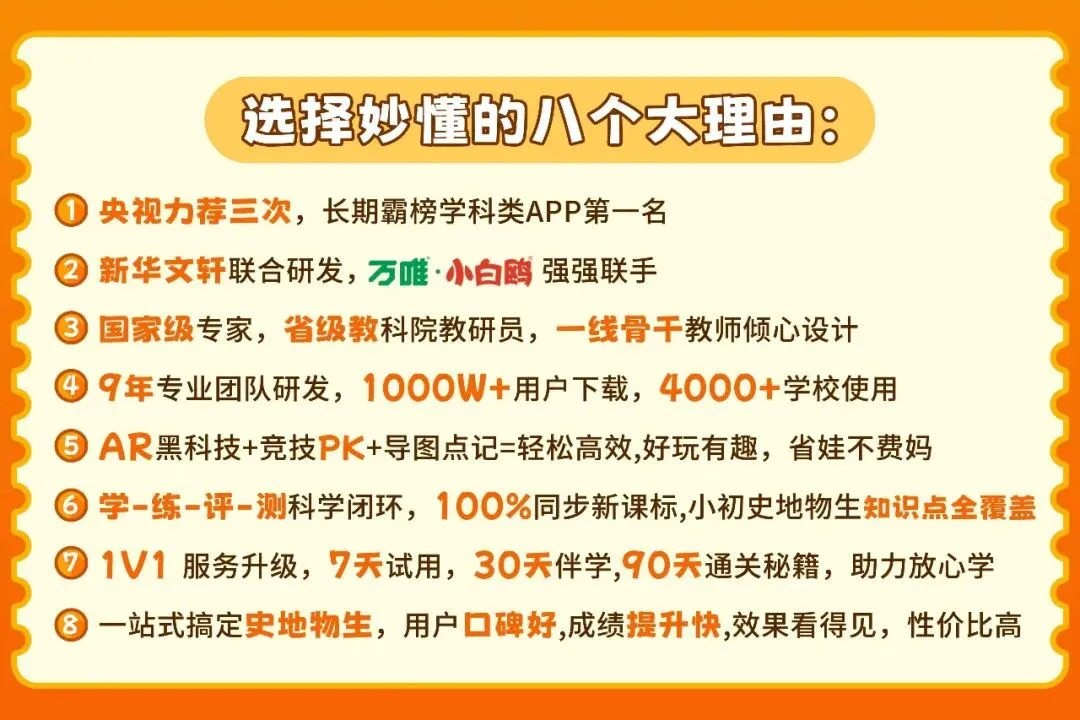 💥妙懂自2016年成立以来,与【新华文轩】联合研发,与万唯·小白鸥强强联手,耗时9年,耗资一个亿,相继推出【妙懂地理】【妙懂历史】【妙懂物理】【妙懂生物】等爆款产品。