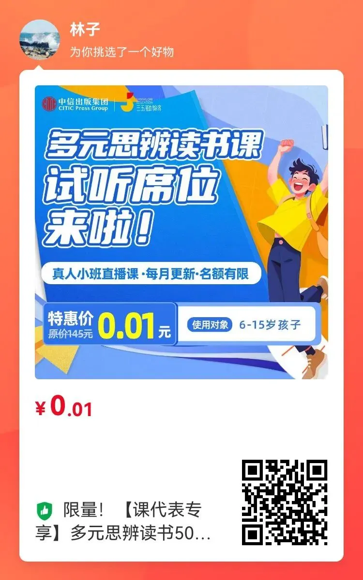 👉仅需一分钱即可试听6-15岁儿童多元思辨读书课,培养孩子的思辨能力,让你的孩子爱阅读、会阅读、懂思考、能应用、上大分!