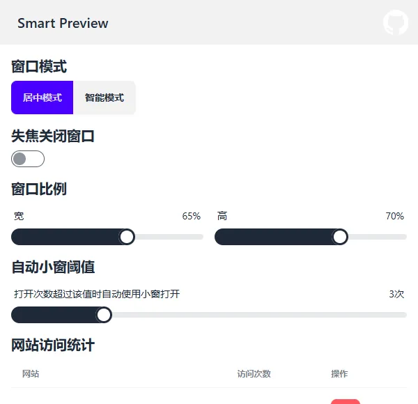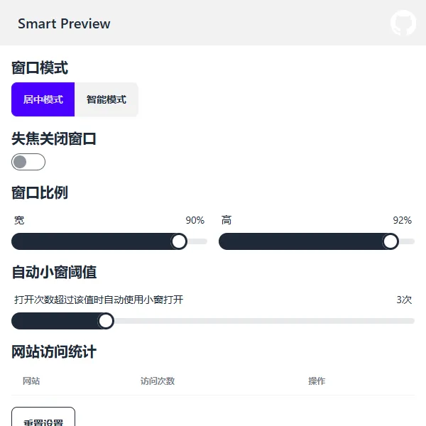 我们还可以根据自己的浏览习惯,自定义调整预览窗口的宽度和高度,设置失焦关闭窗口。