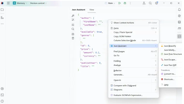 Json Assistant是基于 IntelliJ IDEs 的 JSON 工具插件,让 JSON 处理变得更轻松!主要功能