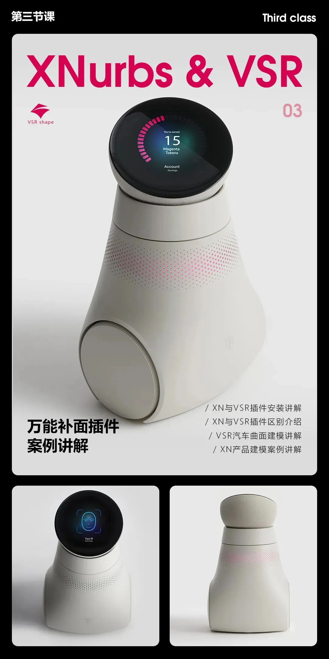 课程全程围绕 3 个小产品案例实操教学,手把手教你把技巧复刻到自己的设计流程里,建模渲染省时省力又省心。