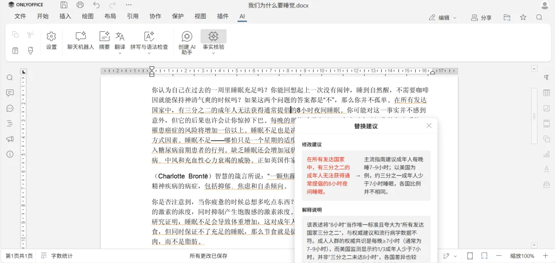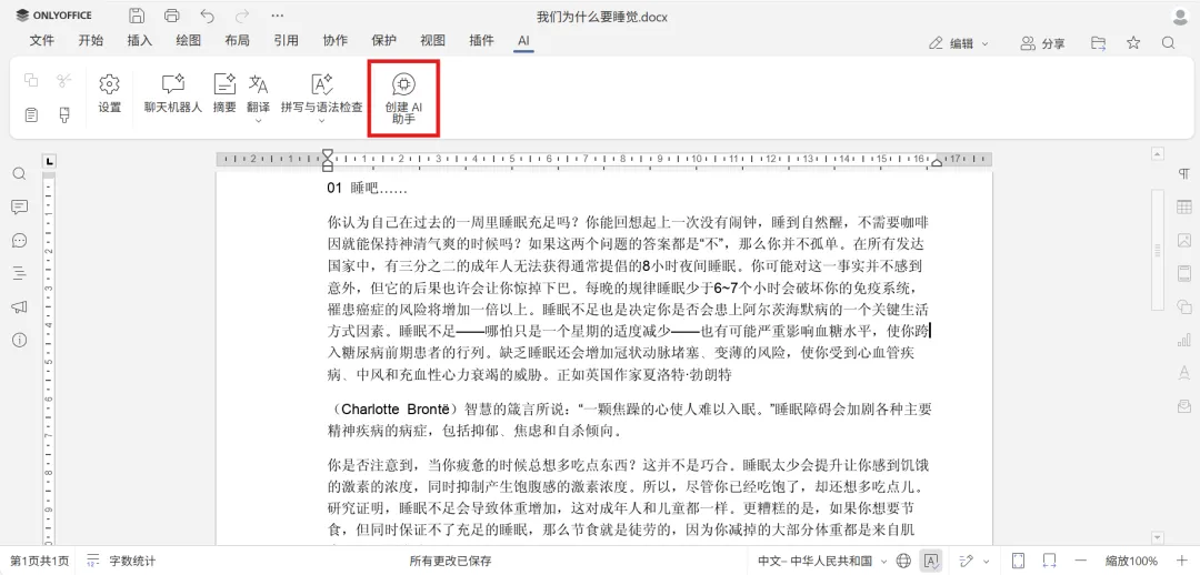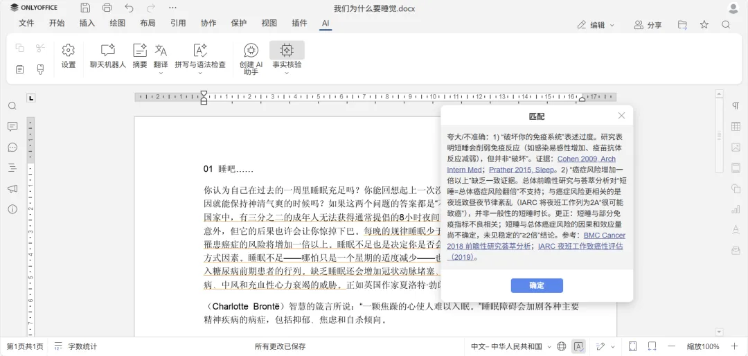 AI 插件使用指南:https://helpcenter.onlyoffice.com/zh/docs/userguides/ai
