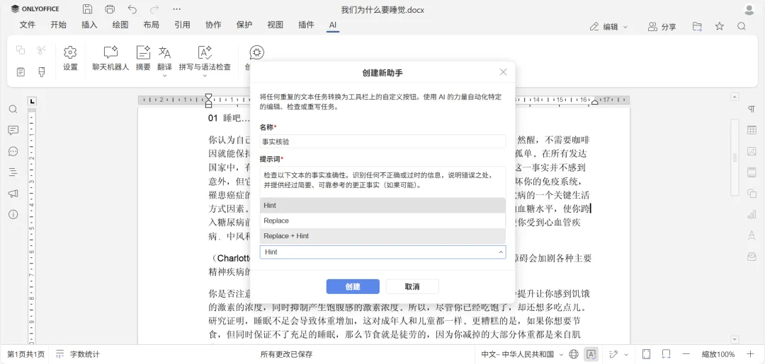 ONLYOFFICE AI 插件新功能:轻松创建专属 AI 助手