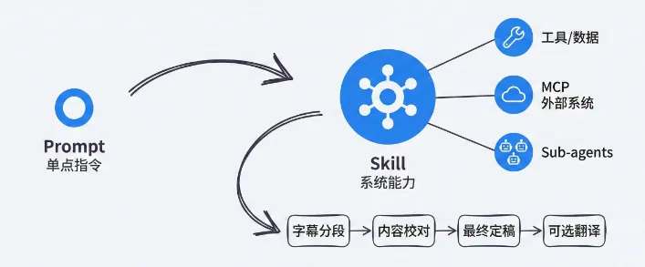 Skill 的出现就是为了解决这种问题,它有一个非常核心的机制,叫渐进式披露(Progressive Disclosure)。