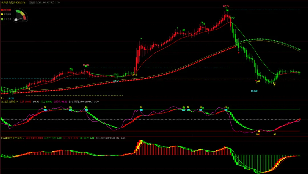 1、乾坤擒龙趋势主图,擒龙波段抄底幅图,macd趋势多空系统幅图,无未来函数