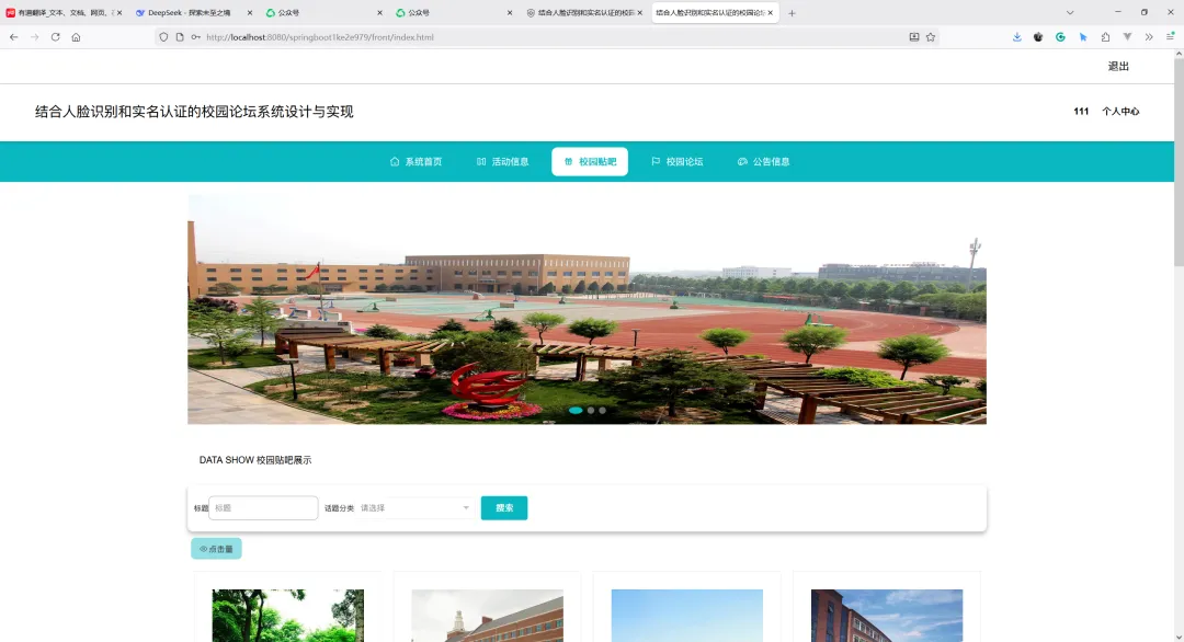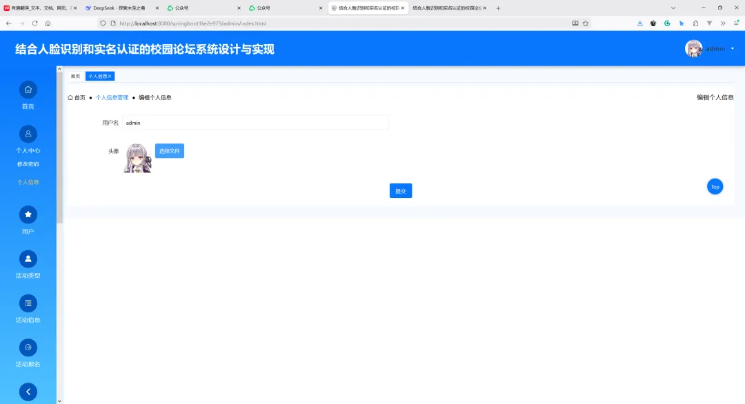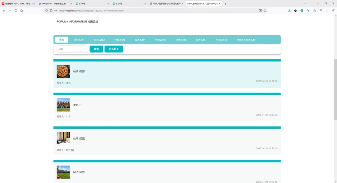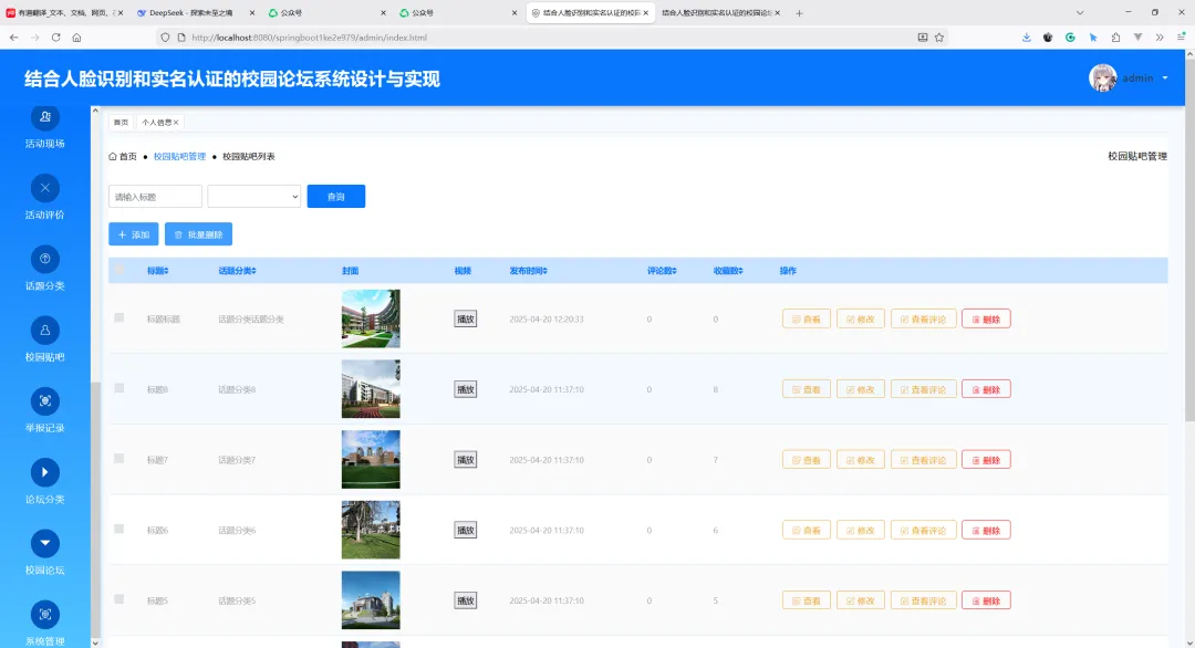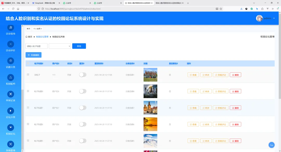 项目名称:基于SpringBoot的结合人脸识别和实名认证的校园论坛系统设计与实现