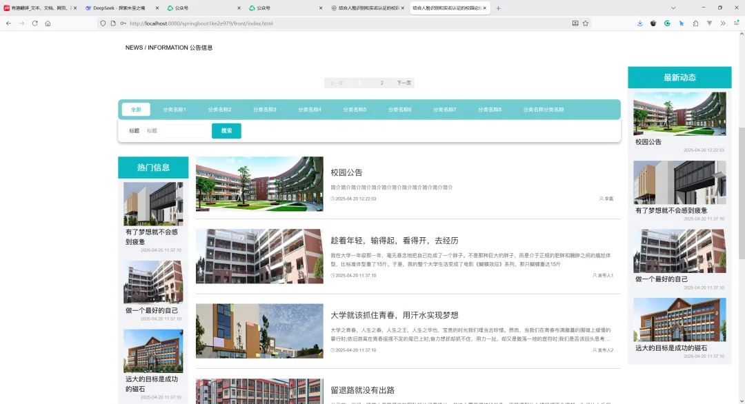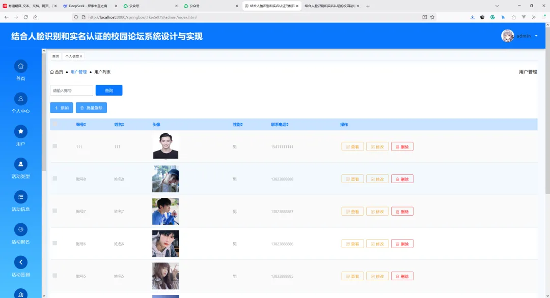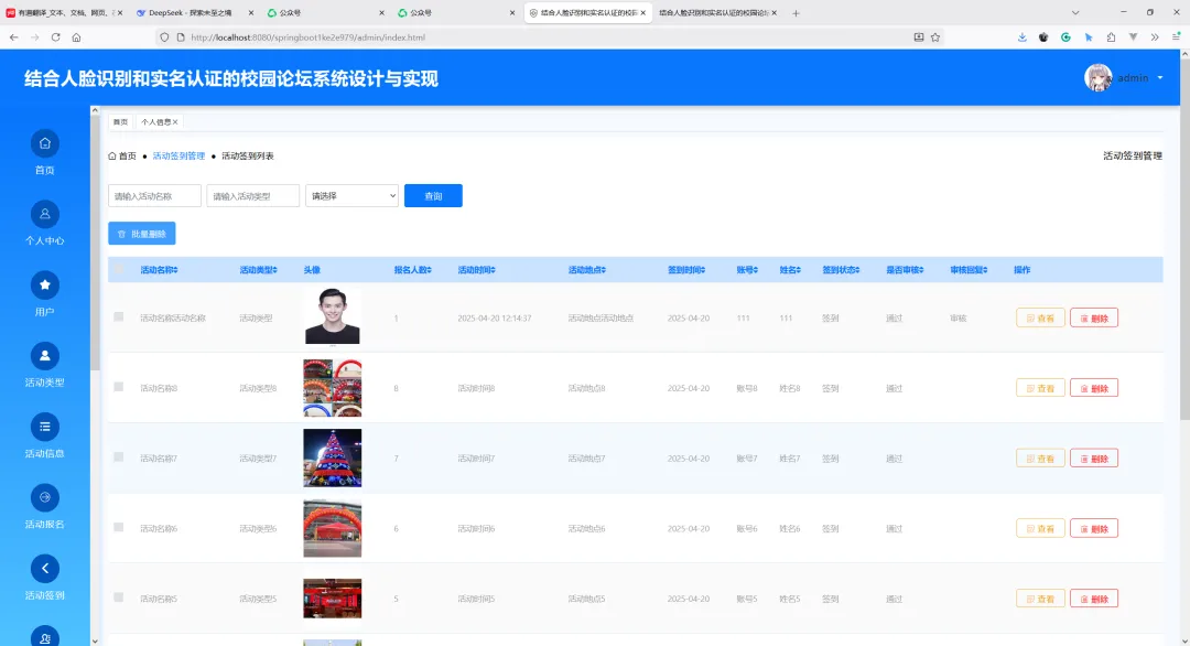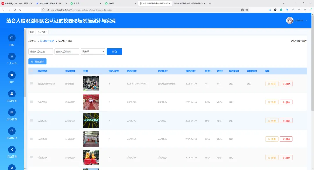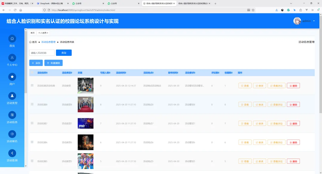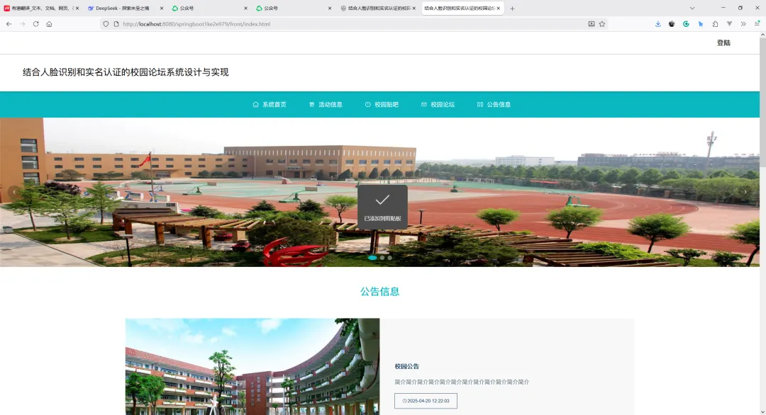 项目名称:基于SpringBoot的结合人脸识别和实名认证的校园论坛系统设计与实现