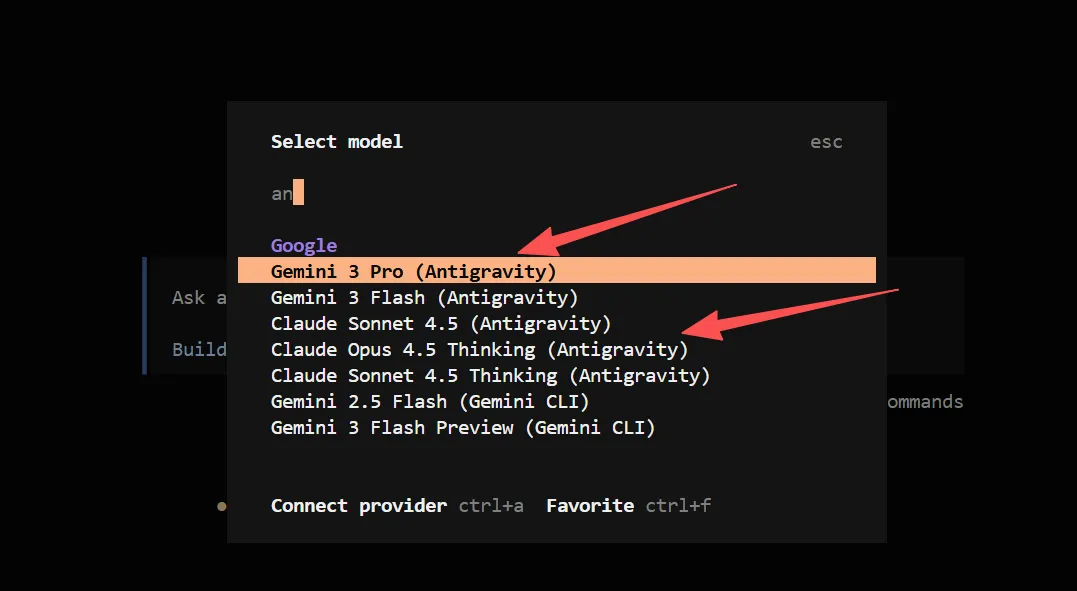 它能通过 Google OAuth 认证,让你的 OpenCode CLI 工具直接调用 Antigravity (Google 内部 IDE) 的接口。简单来说,就是利用 Google 账号的凭证,直接“白嫖” Gemini 3 Pro 和 Claude Opus 4.5 Thinking 等顶级模型的配额!