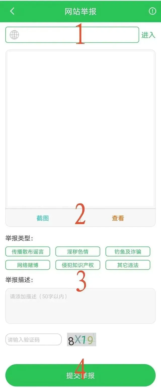 (2)在“12321举报助手”APP页面内点击“网站举报”。