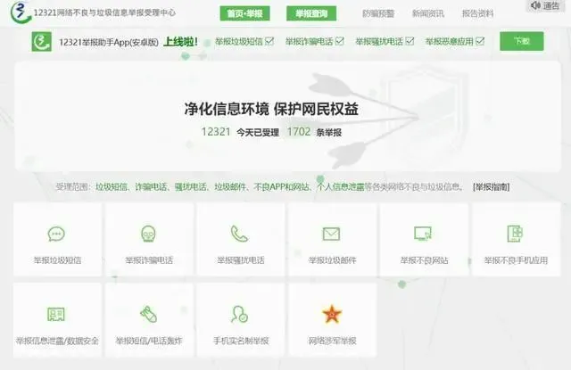 12321网络不良与垃圾信息举报受理中心(以下简称”12321受理中心”)为中国互联网协会受工业和信息化部委托设立的投诉受理机构。负责协助工业和信息化部承担关于互联网、移动电话网、固定电话网等各种形式信息通信网络及电信业务中不良与垃圾信息的投诉受理、线索转办及信息统计等工作。