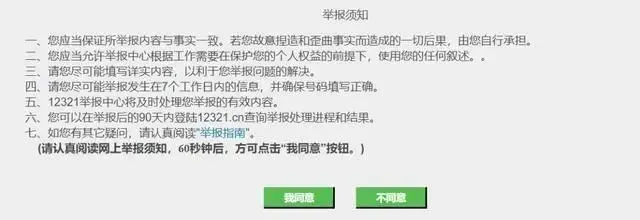 (3)以举报垃圾短信为例,在阅读“举报须知”60秒后点击“我同意”。