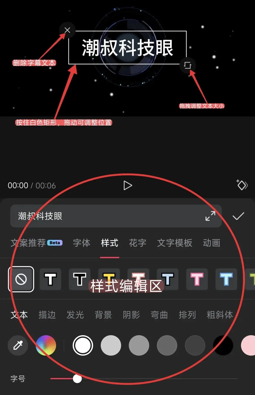 温馨提示:为了方便小白学习,潮叔简单进行了标记,添加的文本可用手指拖拽调整大小,还能调整位置、删除。
